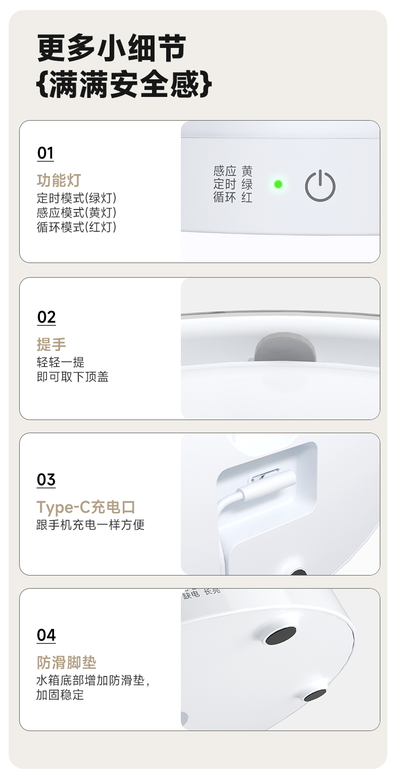 | 工作模式 | 定时模式+感应出水+循环出水 |