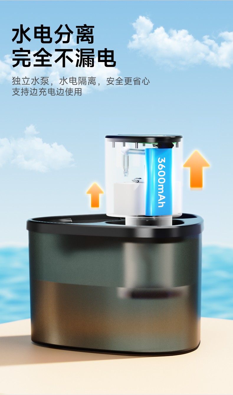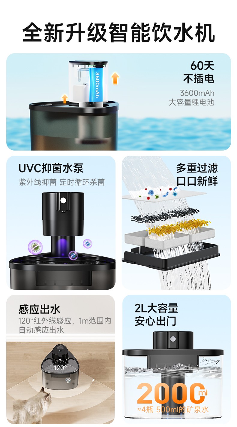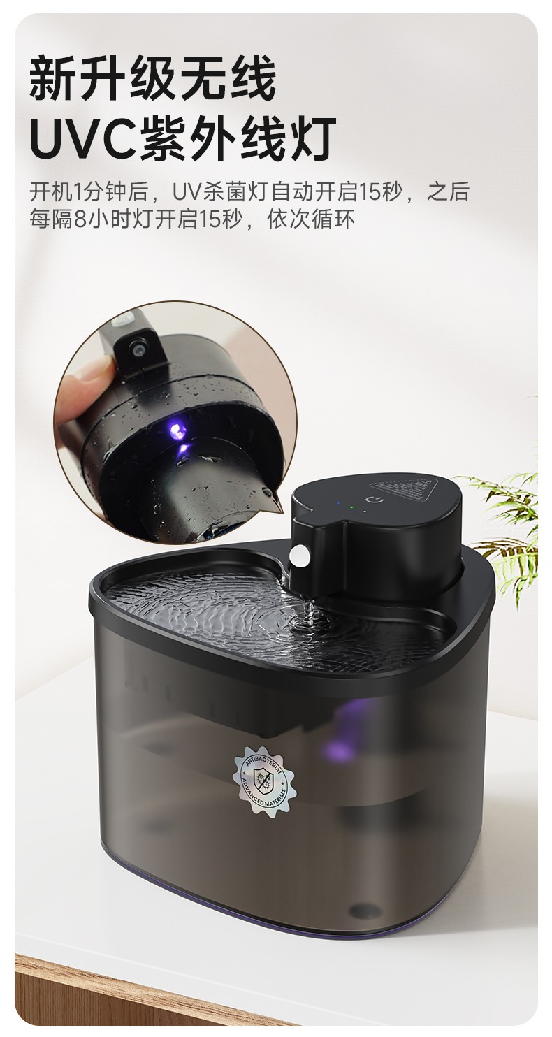 内置UV杀菌灯,定时杀菌,保障水质干净安全。